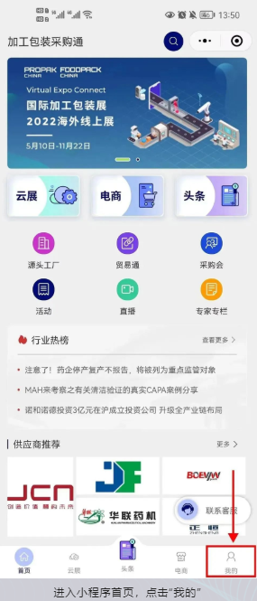 “上海加工包装联展(ProPak China & FoodPack China)”携手“制药包装展(P-MEC)”,于2022年11月22日-2023年1月20日期间在“加工包装采购通”小程序平台上推出“云上贸易季”系列活动,助力企业线上获订单、拓市场。