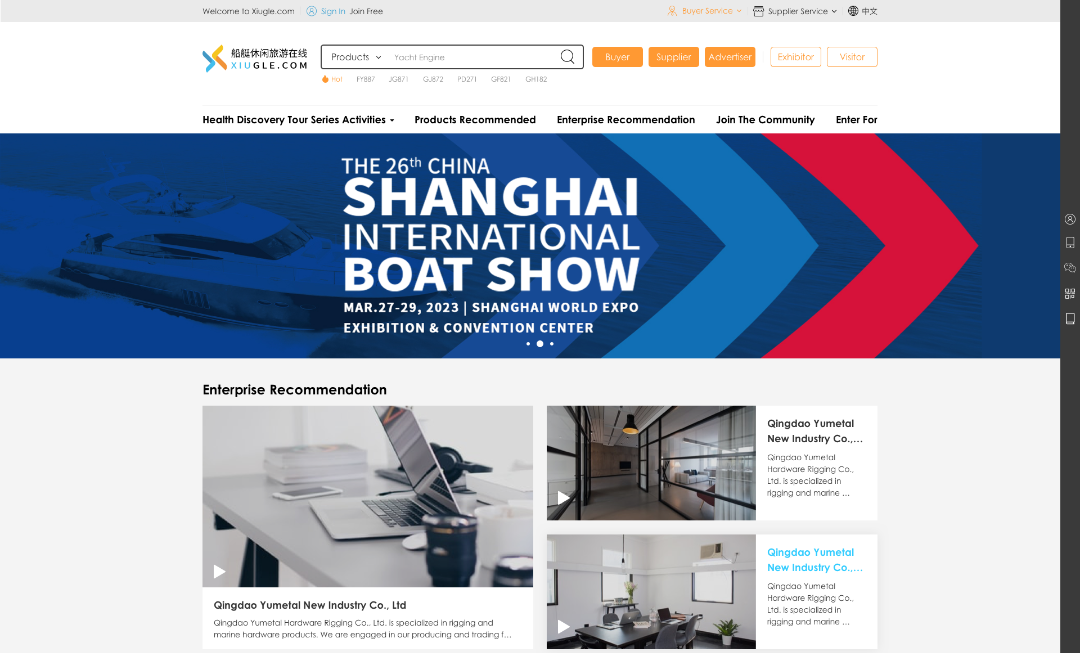 依托于26年悠久历程的专业船艇展会CIBS线下展而诞生的船艇休闲旅游在线B2B平台(XIUGLE.COM),拥有海量行业资源,已成功举行多次线上商贸配对会及一系列线上活动,为供应商匹配到优质合作伙伴,获得供应商与采购商的优良口碑。今年7月,